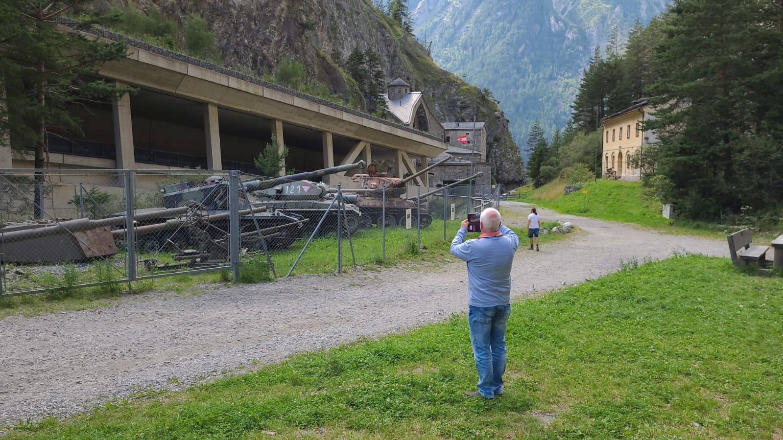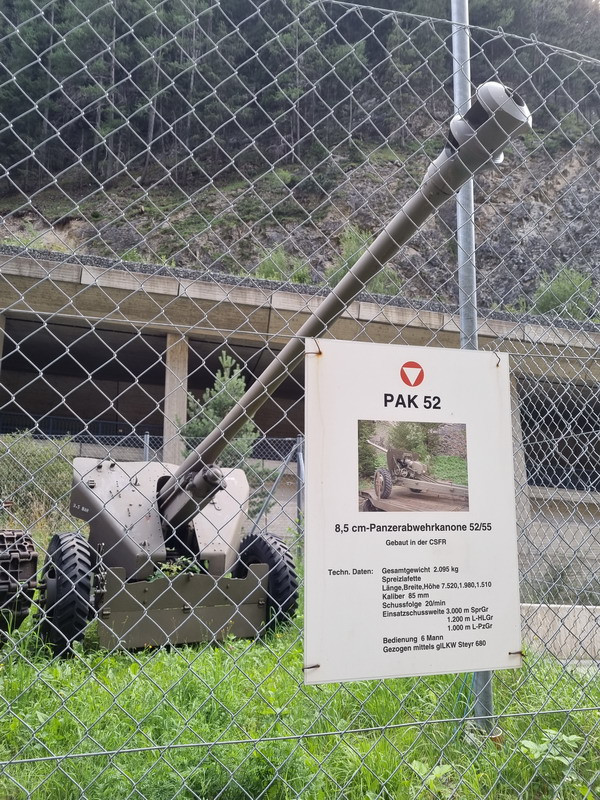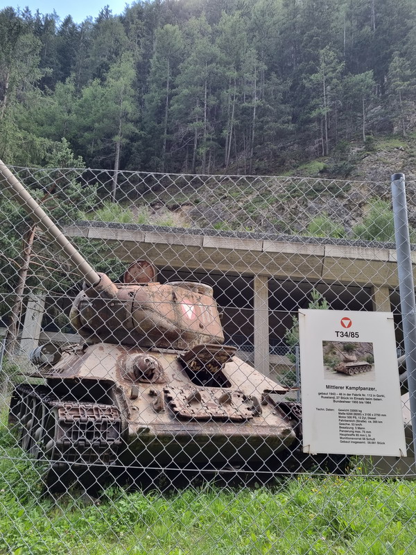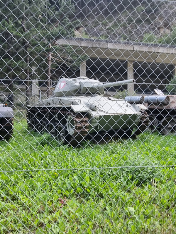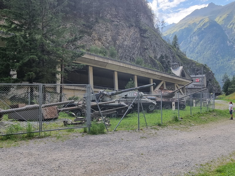 Auf der anderen Straßenseite ist ein Panzer-Parkplatz...