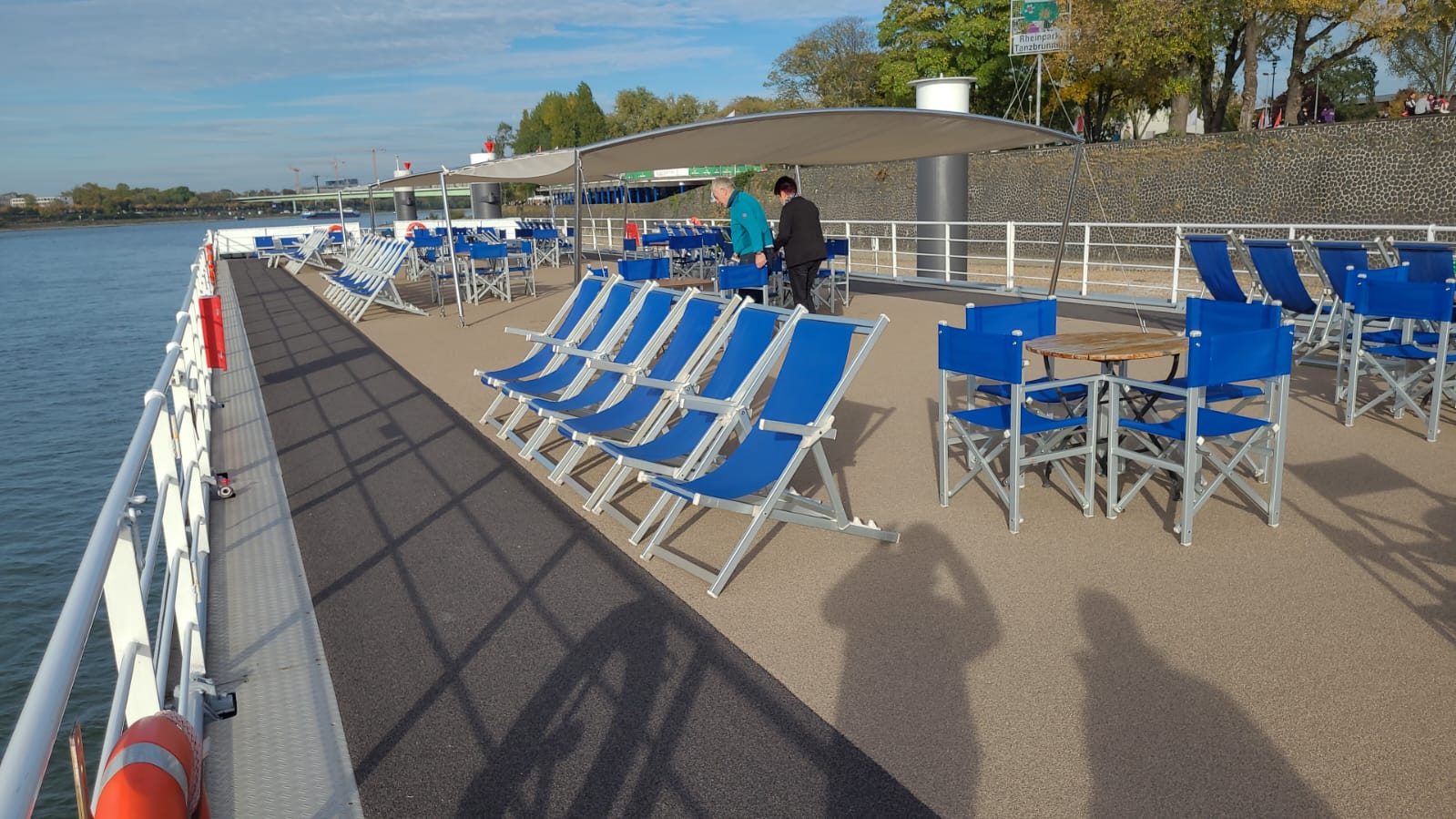 Am Sonntag sind wir bei herrlichem Sonnenschein nach Köln gefahren, haben in einem nahe gelegenem Wohngebiet einen Parkplatz gefunden und sind mit einem UBER-Taxi zum Anleger gefahren...