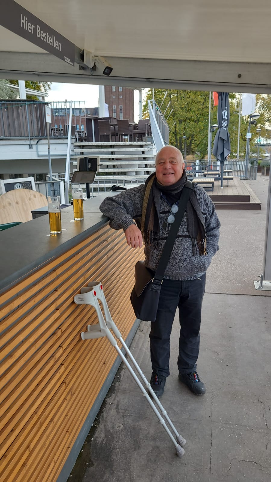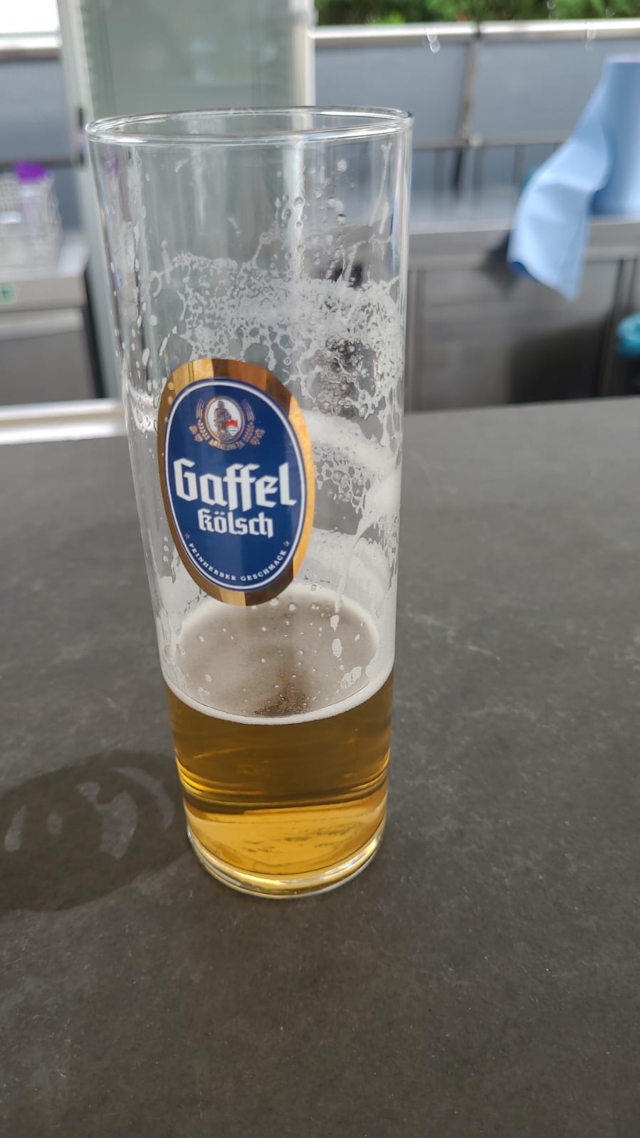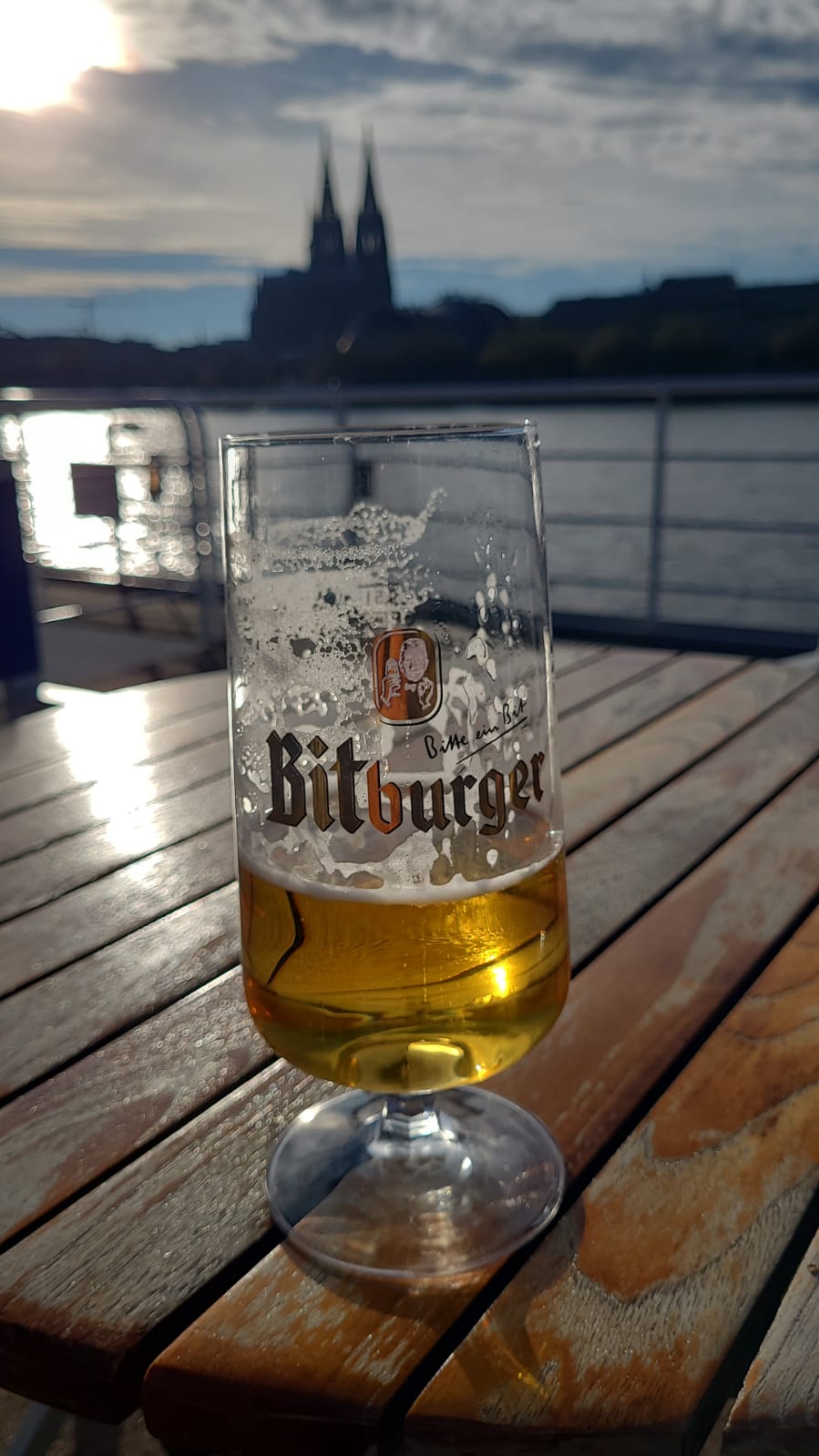 Weil wir superzeitig da waren, sind wir noch zu den Rheinterrassen gehumpelt und haben Bier in Schnapsgläsern bekommen... (LINK).