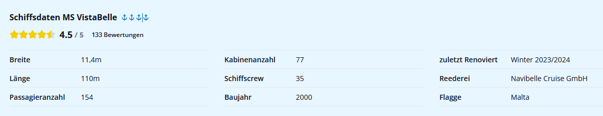 Als Schiff diente die MS VistaBelle (LINK).