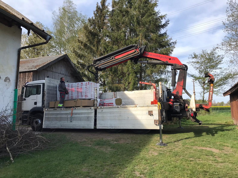 Das erste Material für den Dachbodenausbau wird angeliefert