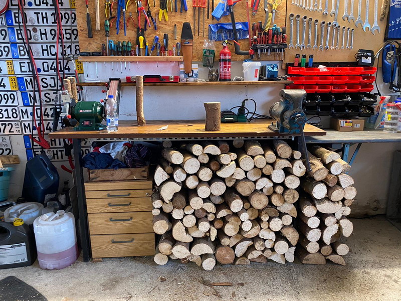 Unser Schreinermeister nutzt die Zeit bis Feuerholz geliefert wird...