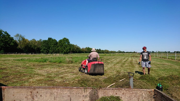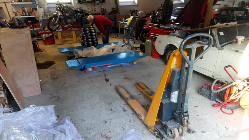 Der Nachbar bugsiert uns das 500kg Teil in den Stadl...